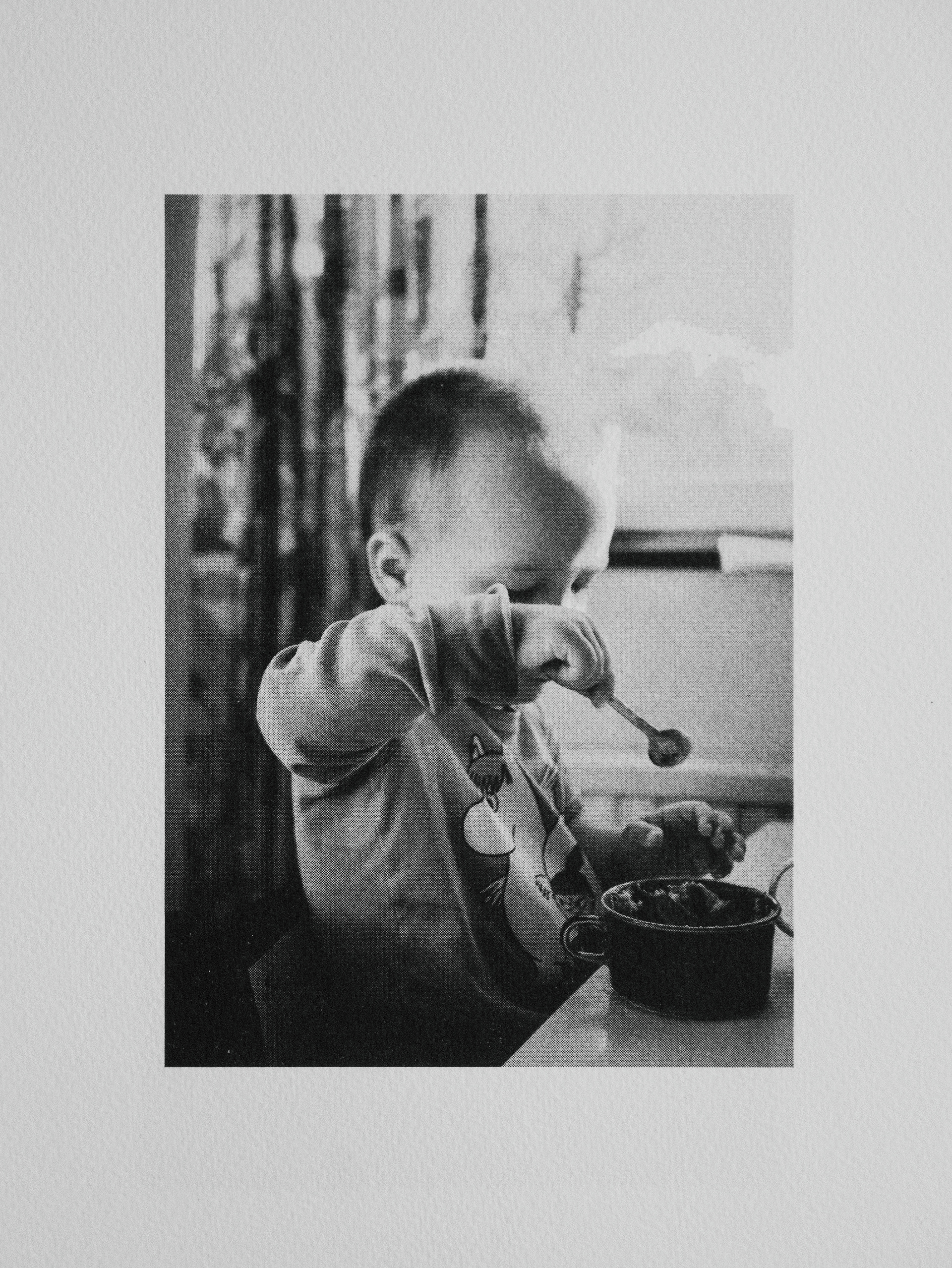 Digitala svartvita fotografier, printade med risoprint på akvarellpapper.